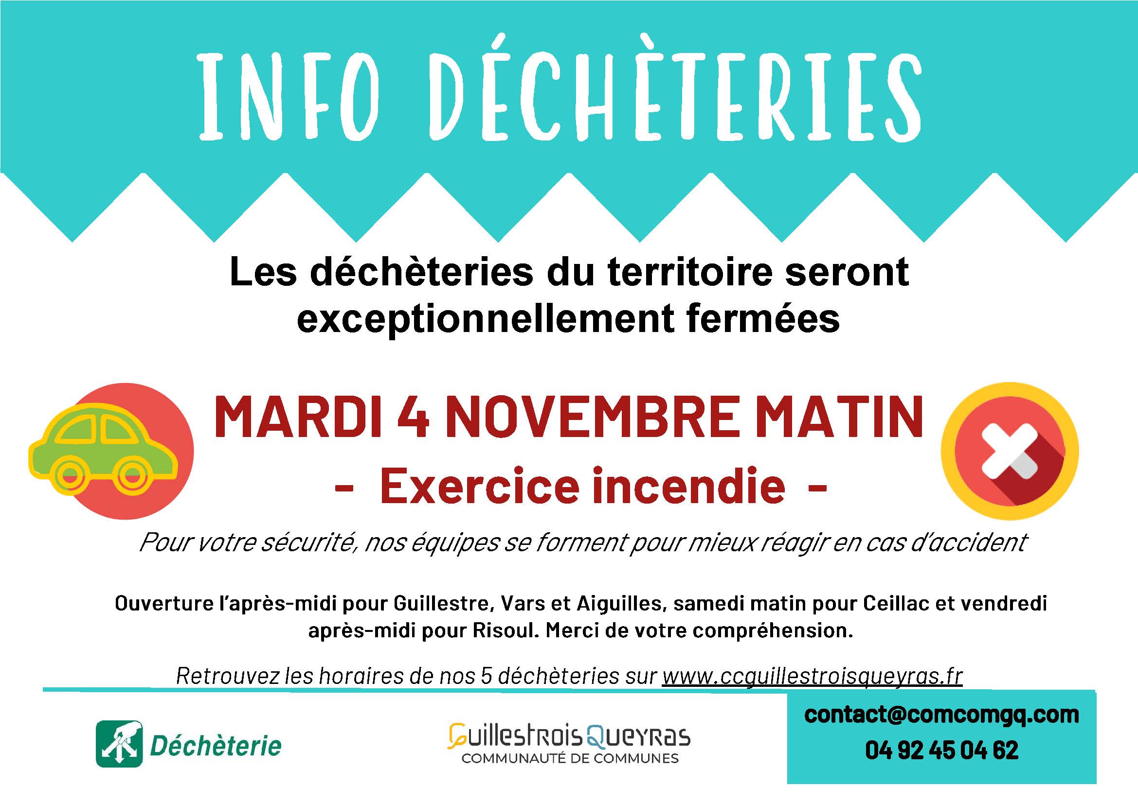 Pour cette raison, les déchèteries du territoire seront exceptionnellement fermées ce mardi 4/11 au matin. Merci de votre compréhension.