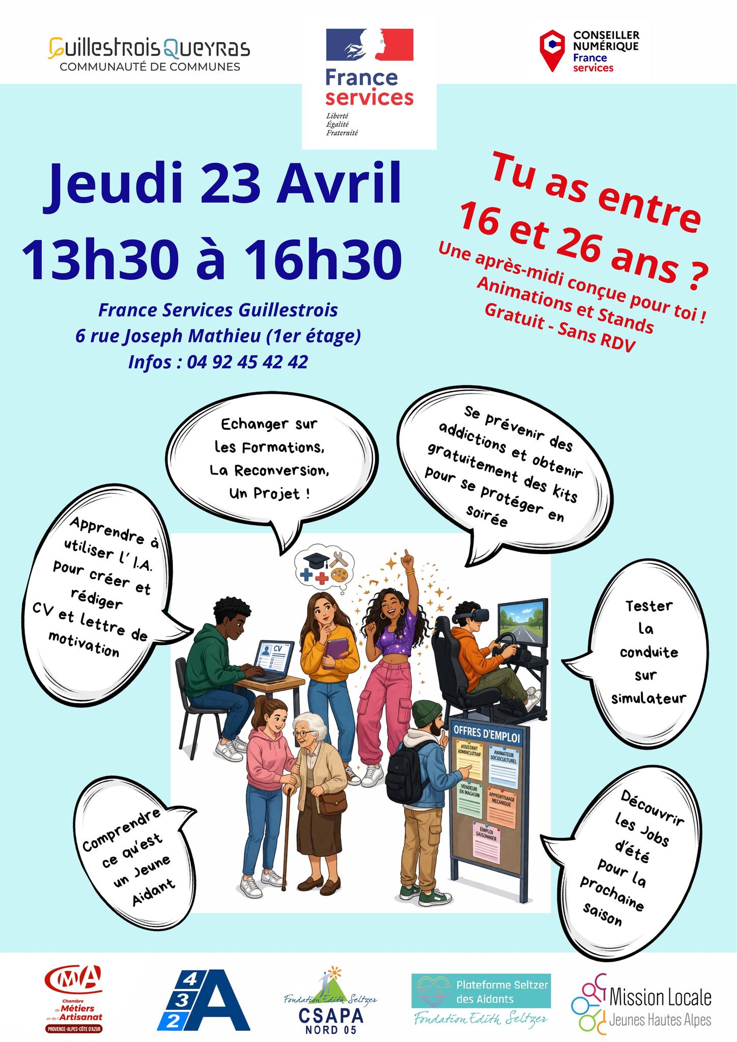 C’est gratuit et sans rendez-vous ! Plus d’info au 04 92 45 42 42 ou franceservices.guillestrois@comcomgq.com