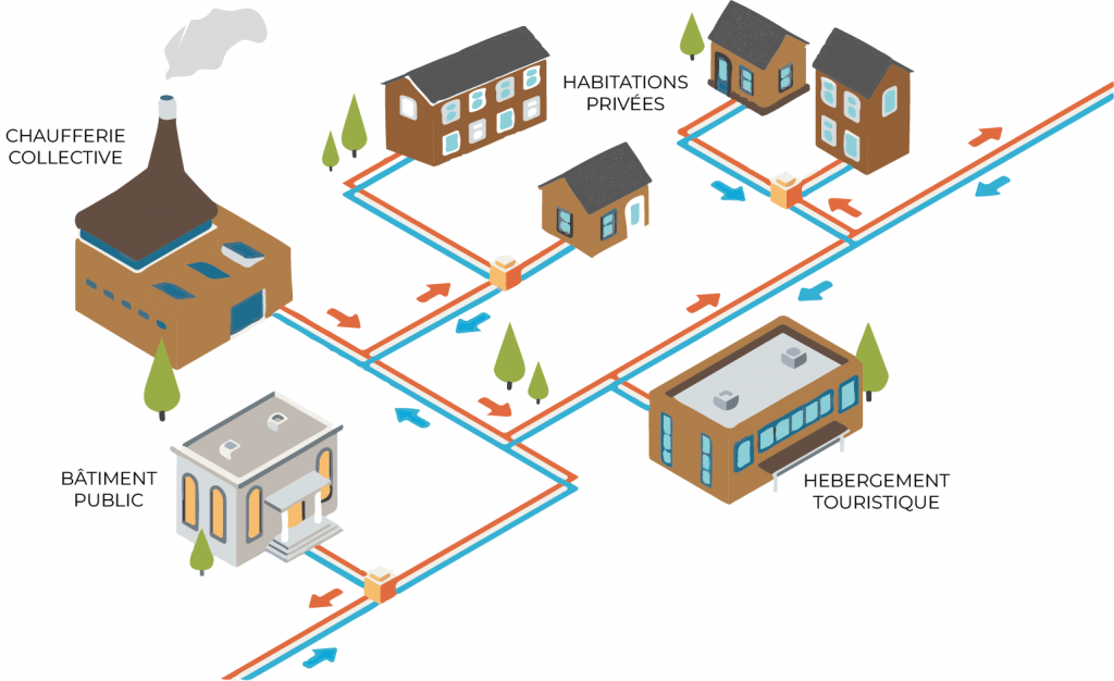 Ces réseaux de chaleur permettent d’alimenter bâtiments publics ou privés avec une énergie renouvelable et à un coût de la chaleur maitrisé.